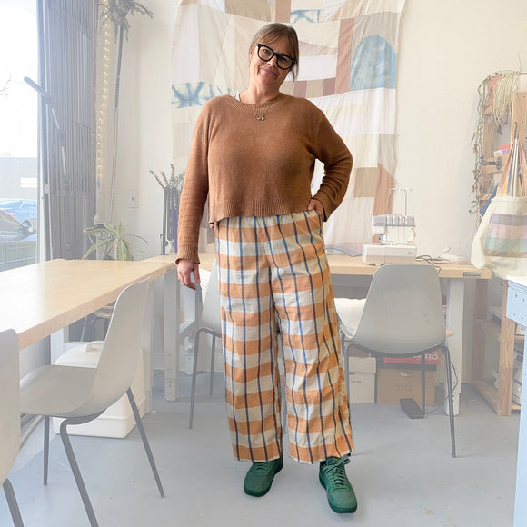 Whether you are looking to learn sewing or need your favorite pair of jeans fixed up, we aim to create a welcoming environment and promote slow fashion. We love working on one-of-a-kind custom home pieces like patchwork curtains or custom cushions. And of course, we offer our natural fiber clothing line that is made in-house.