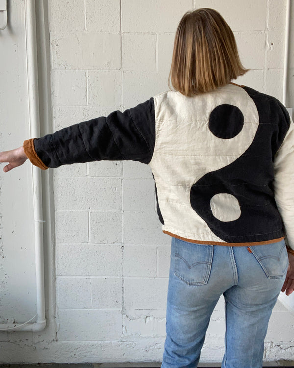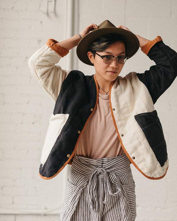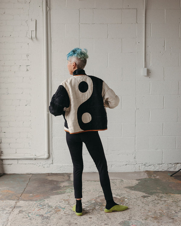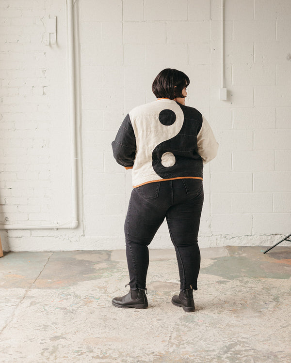 The Duality Coat is back! A cropped version of our Quilted Coat that is fully reversible! We created this while truly feeling the contrasting experiences and feelings life can bring and felt compelled to make this coat as a result.