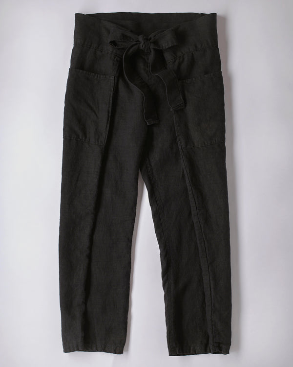 WRAP PANTS / BLACK LINEN