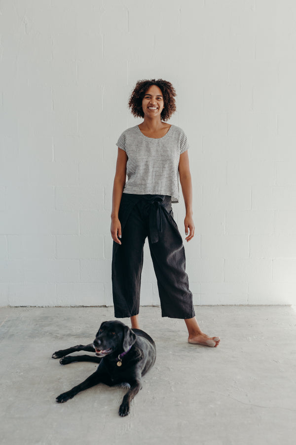 The favorite magic pant that started TIGEROWL. Dress them up or wear them at home for 5 days in a row -- either way you'll feel put together. They're eye-catching, so comfortable, and flattering on many shapes and sizes. The wide waistband and two oversized pockets make them extra cozy and practical. The design allows for fluid sizing and fluctuating bodies and make great pregnancy pants, as well as for postpartum. Start saving, cause you're gonna want these in multiple colors.
