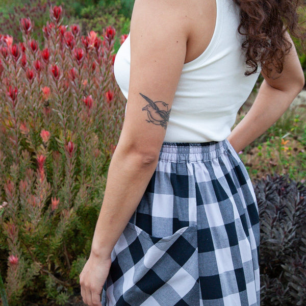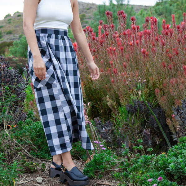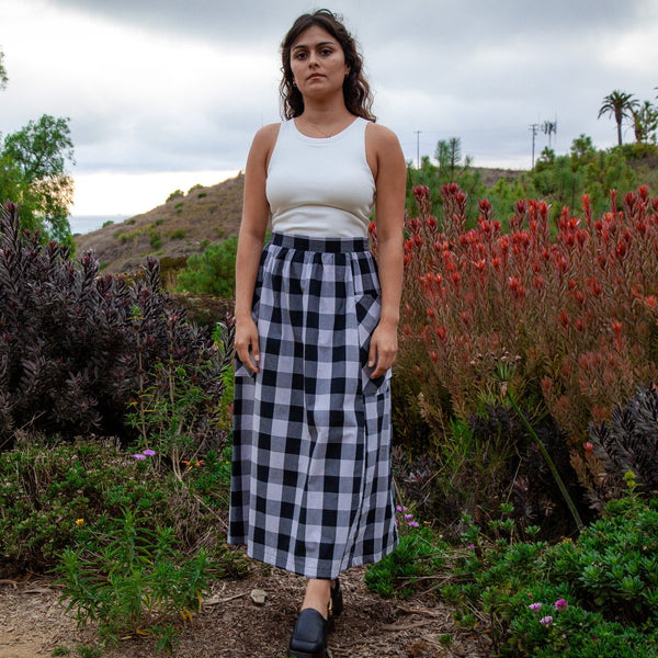 The Flora Skirt is the perfect all-season natural fiber piece. Made with 100% cotton it is easy for warm weather but also perfect for layering during the colder months. You know we love pockets and this design does not disappoint! Two oversized side pockets (that are fully functional and won't drag your skirt down!) and a flat front waistband are our favorite features on this piece. The elasticated back gives flexibility while the flat front waistband avoids that feeling of elastic cutting into you while also creating a more tailored look. We love pairing this with our Crop Top!