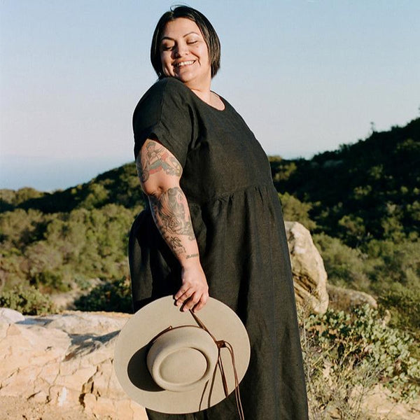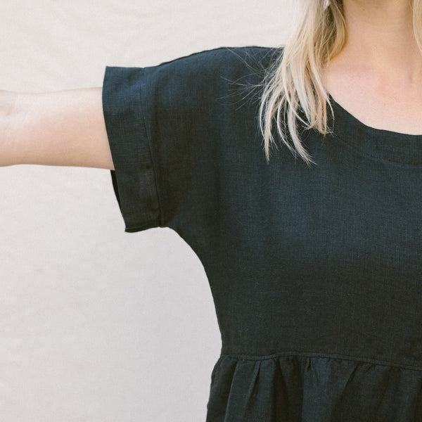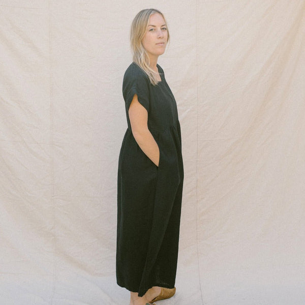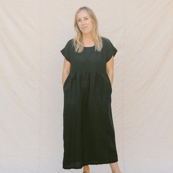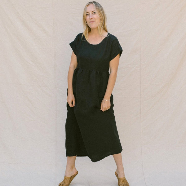 The Grace Dress was born out of a desire to find the perfect midi dress. We wanted something that was easy and comfy for alllll those days at home, but classy and beautiful enough to be spruced up and worn out. The perfect house/party dress. Perfect for the house. Perfect for a party. Heck, even perfect for a house party! We love the easy pull-on style (no zippers or buttons to fuss with) and if you know us, you KNOW we added giant on-seam pockets! The dolman sleeve allows for plenty of easy movement and we capped them with a wide cuff to make it feel a bit more luxurious. The slightly curved front waist seam creates a subtle high-low effect and allows the linen to drape on every body in a super flattering way.
