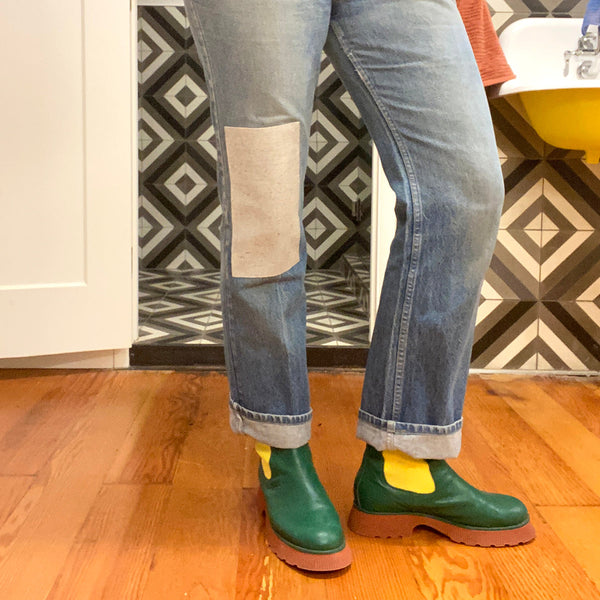 To use a sewing machine in this class, you must have some sewing experience, know how to thread a machine and do basic straight stitches. Some repairs may need to be hand stitched or part of the garment may need to be deconstructed in order to properly repair, so keep in mind that a hole in a wide part of the garment would be an easier project to start with than a hole in the knee of jeans. Feel free to send us a photo of your garment ahead of time if you want to ask us some questions!